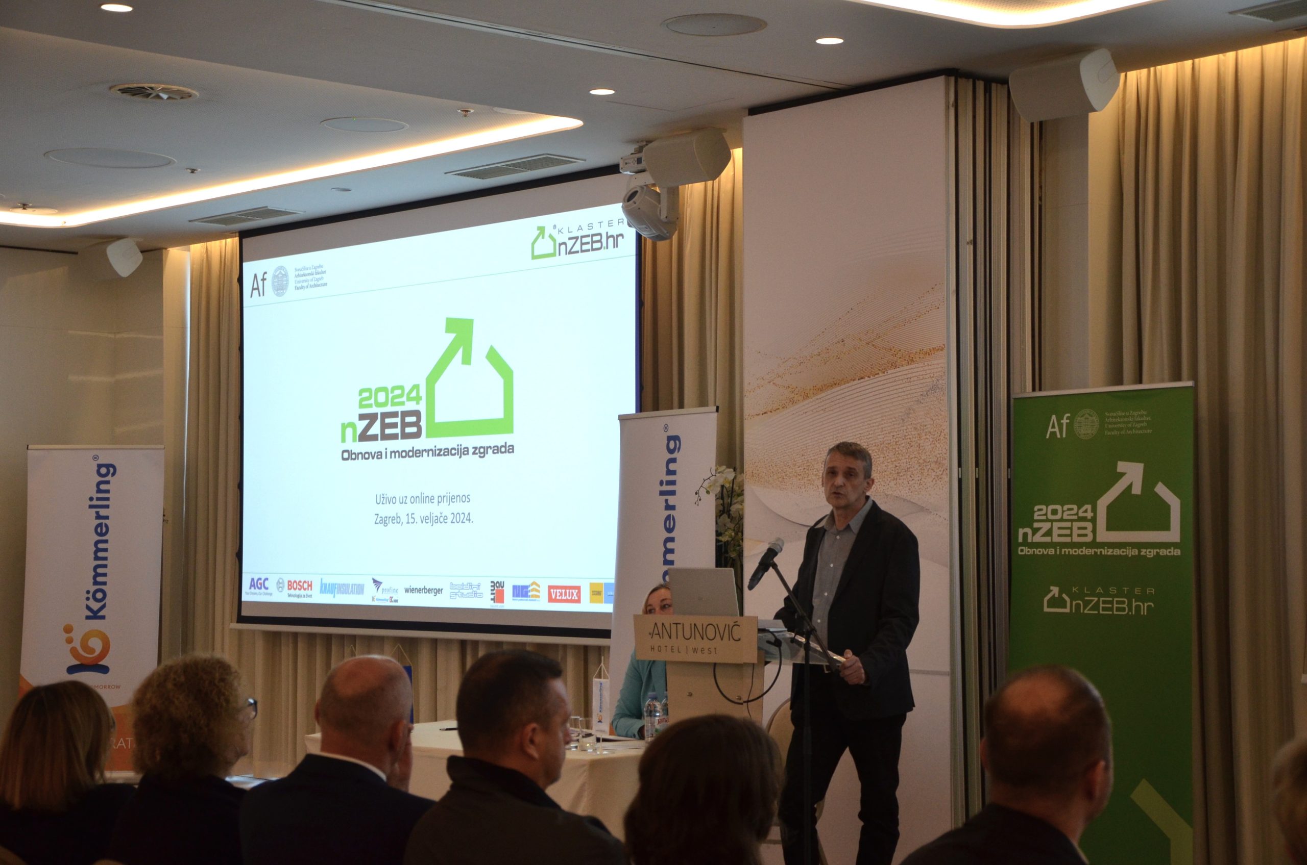 Zagreb (15. veljače 2024.) Sveučilište u Zagrebu Arhitektonski fakultet i Klaster za energetsku učinkovitost i održivost u zgradarstvu – nZEB.hr u sklopu aktivnosti Stručnog usavršavanja AF-a organizirali su 15. veljače 2024. godine cjelodnevni stručni u Hotelu Antunović Zagreb pod nazivom nZEB 2024 Obnova i modernizacija zgrada.